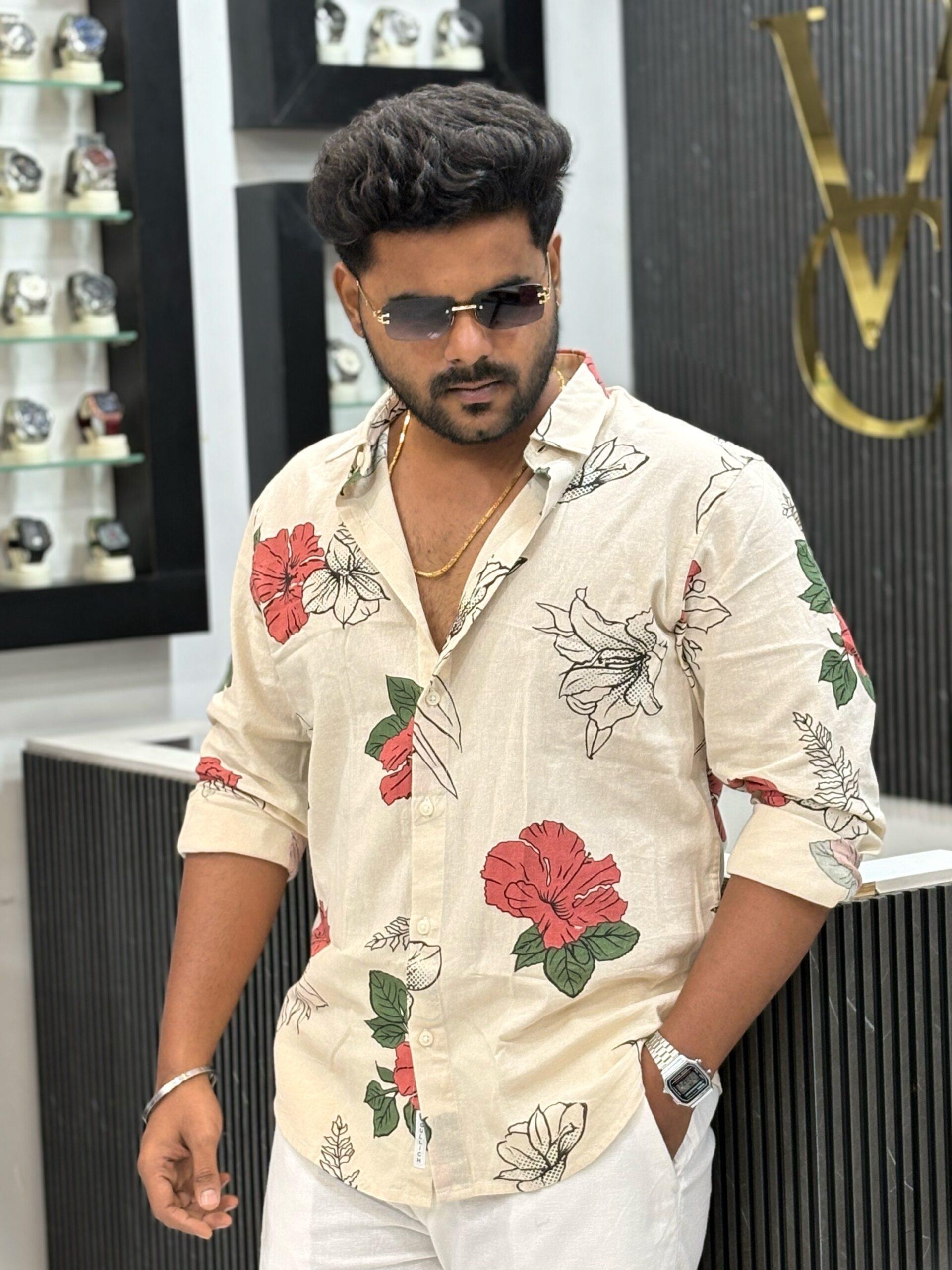 Floral linen printed shirt – Off White 800.00